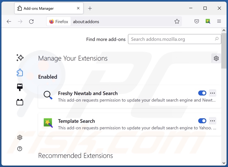 (at the top right corner of the main window), select "Add-ons and themes". Click "Extensions", in the opened window locate "Colour Cure", as well as all recently-installed suspicious extensions, click on the three dots and then click "Remove".