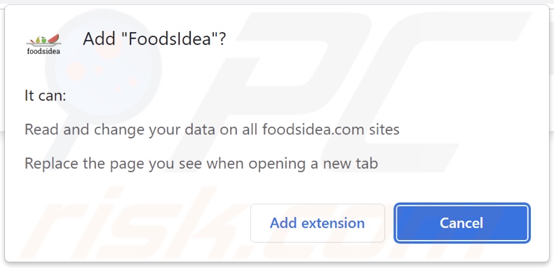 While browsing suspicious sites, our researchers discovered the FoodsIdea browser extension. It is endorsed as an easy-access tool for online cooking recipes. After analyzing this extension, we determined that it is a browser hijacker. FoodsIdea modifies browsers to promote (through redirects) the foodsidea.com fake search engine.