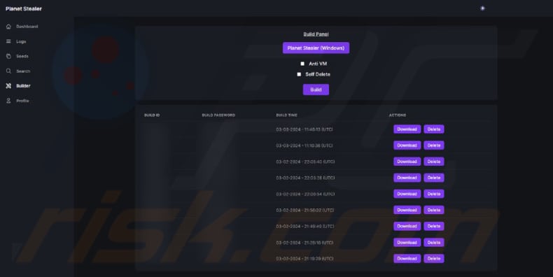Furthermore, Planet offers the functionality to kill builds, ensuring that users no longer receive logs from compromised systems. Each build generated by Planet Stealer is unique, aiding in its evasion of detection. Also, Planet provides a web-based panel for convenient viewing, searching, and downloading of stolen data.