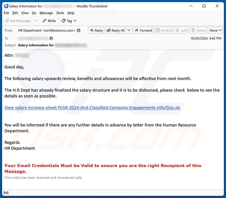 Phishing/ScamAlso Known As: "Salary Increase" phishing email