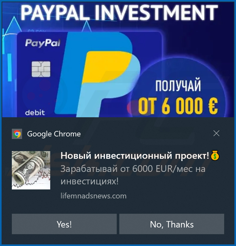 Rogue websites use their notifications to run intrusive advert campaigns. The displayed ads can endorse online scams, untrustworthy/dangerous software, and even malware. Therefore, via webpages like lifemnadsnews[.]com – users can experience system infections, serious privacy issues, financial losses, and identity theft.