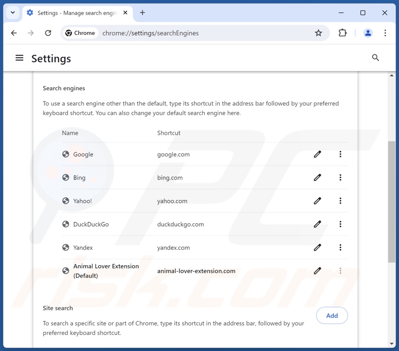 Instead, Animal Lover Extension hijacks browsers by modifying their settings to promote (via redirects) the animal-lover-extension.com illegitimate search engine.