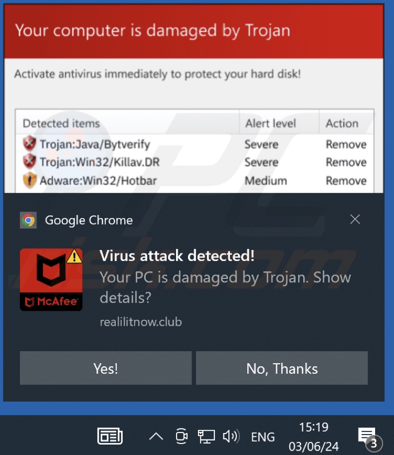 To summarize, via sites like realilitnow[.]club – users may experience system infections, severe privacy issues, financial losses, and identity theft.
