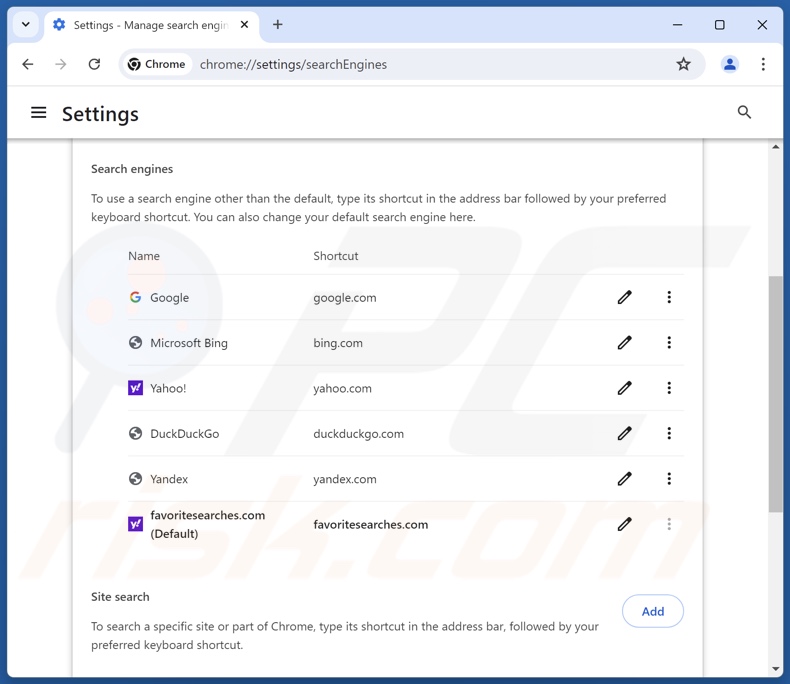 Favoritesearches.com is a fraudulent search engine. Typically, websites of this kind cannot provide search results and redirect to legitimate search engines. Favoritesearches.com is no exception. Users may begin experiencing redirects to these fake webpages when a browser hijacker is installed on their device.