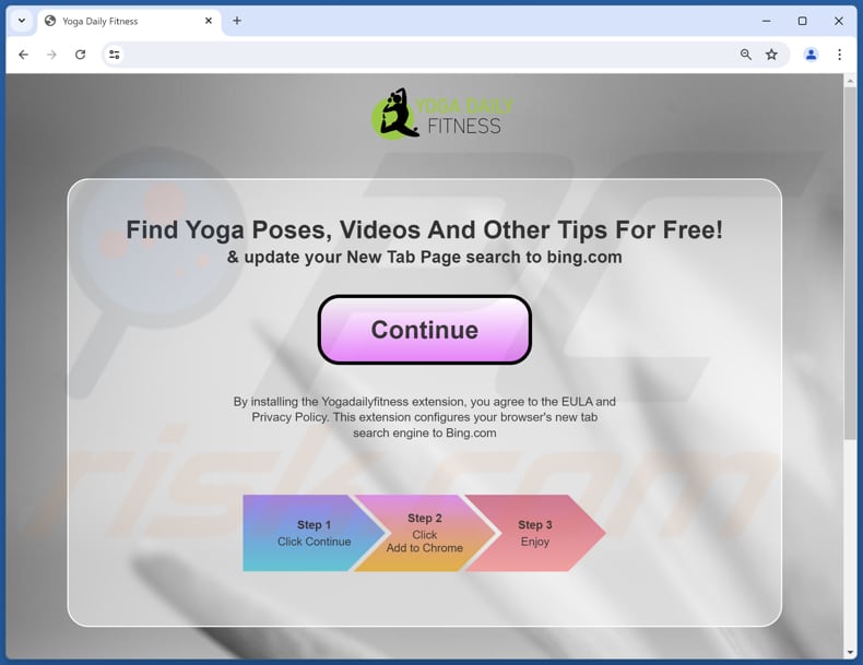 Yogadailyfitness.com is forcibly opened by a browser when it is hijacked by YogaDailyFitness, an extension that hijacks a browser by chanting its settings. YogaDailyFitness targets the default search engine, homepage, and new tab page. This extension sets them to yogadailyfitness.com.
