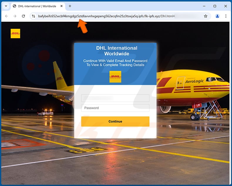 Fake DHL website used in this scam:
