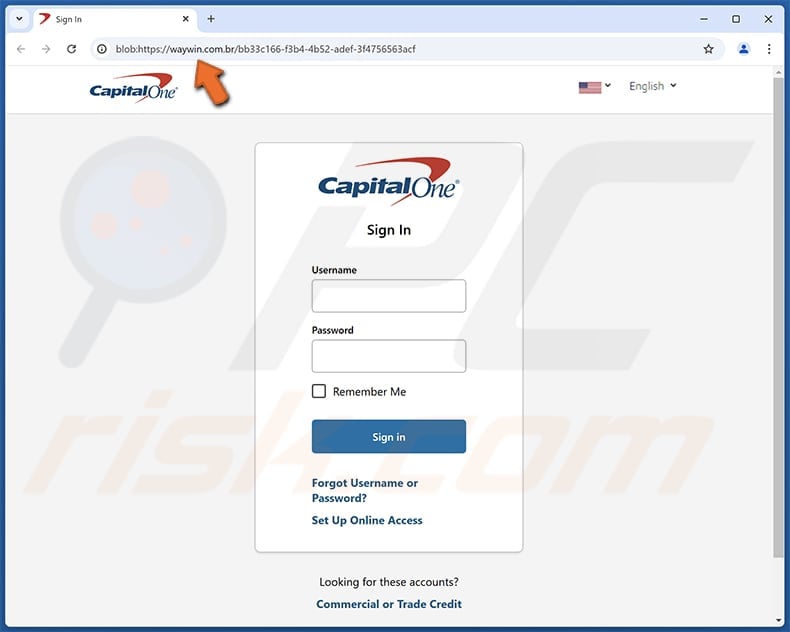 It is important to note that Capital One is a legitimate bank holding company. Scammers use its name to make their email appear more legitimate. Clicking the provided link ("click here to update and recover your account access") leads to a fake Capital One login page requesting to provide a username and password to sign in.