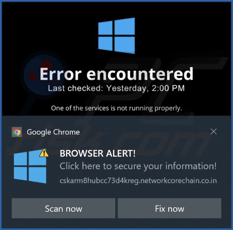 Our researchers found the networkcorechain.co[.]in rogue page while browsing suspicious websites. After analyzing this webpage, we determined that it promotes scams and browser notification spam. It can also generate redirects to different (likely untrustworthy/hazardous) sites.