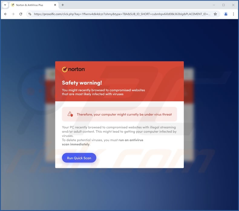 Screenshot of the "Safety Warning" scam (Norton version):