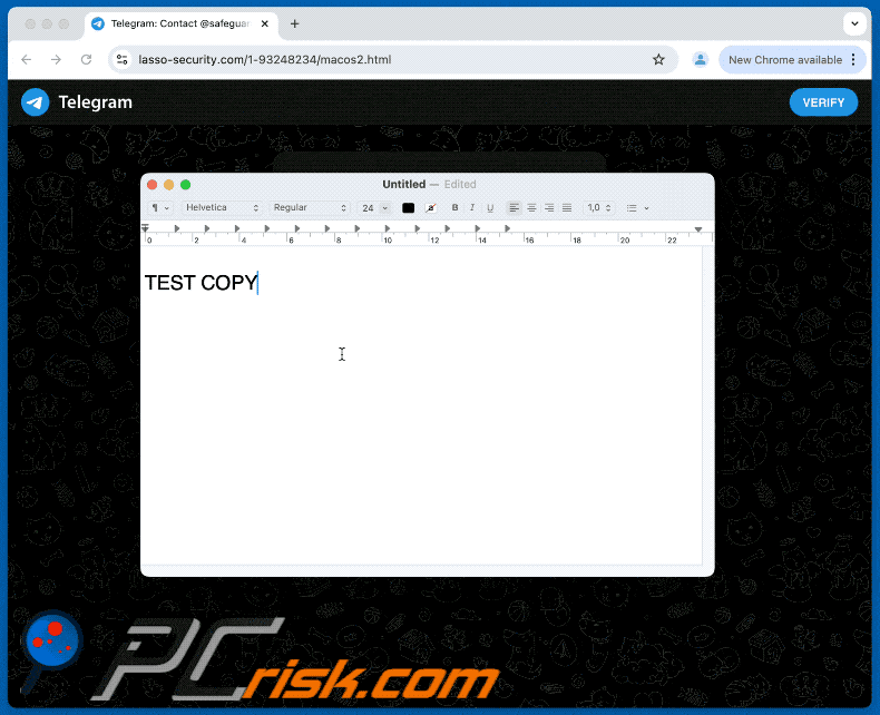Users may be tricked into clicking links from Telegram channels or fake social media accounts. These links lead to a fake bot or group, promising account verification or investment opportunities. Once users follow instructions, malicious code is secretly copied to their clipboard. If they paste this code into tools like macOS Terminal, it activates the malware.