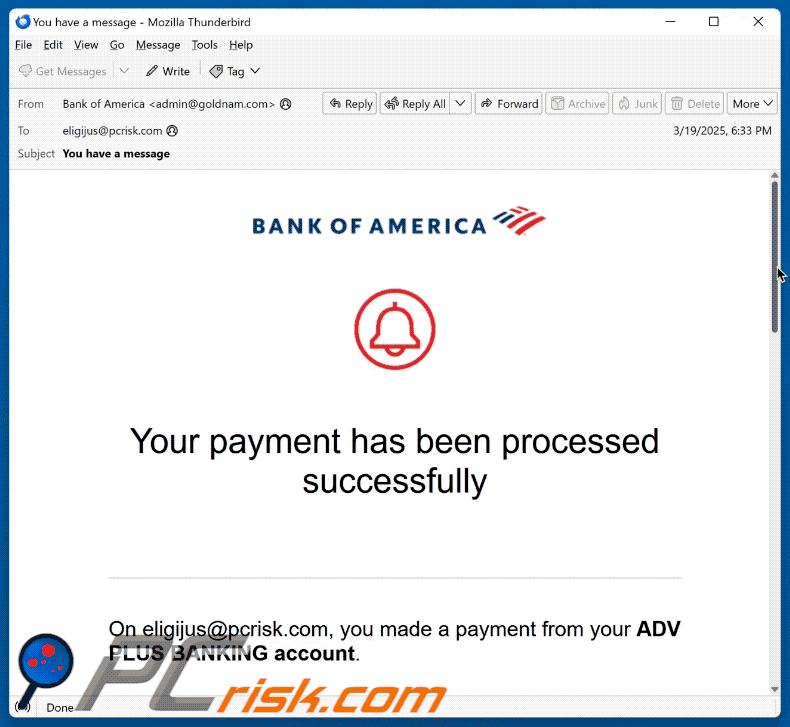 More about the "Bank Of America - Payment Processed Successfully" scam email