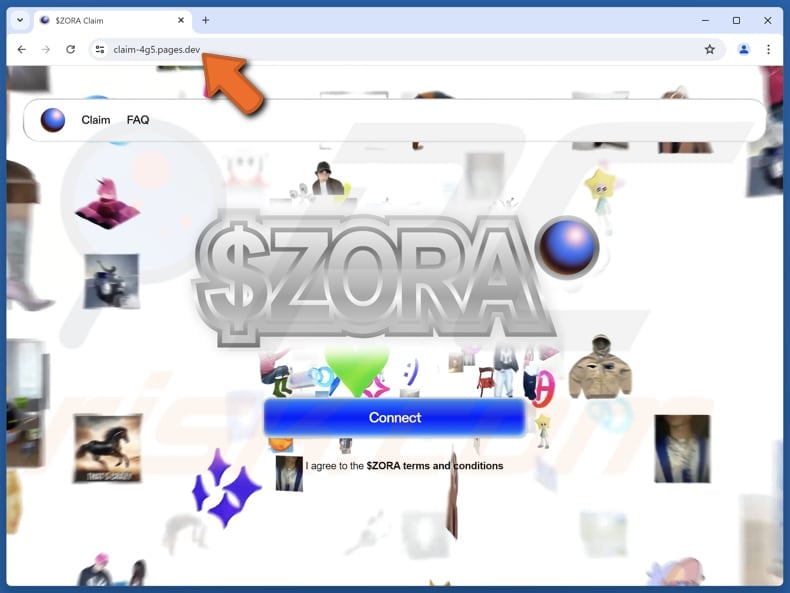 We have inspected the page (claim-4g5.pages[.]dev) and concluded that it is a copy of the original ZORA (zora.co) site. The fake website offers users the chance to claim $ZORA tokens as a lure. Its purpose is to trick individuals into taking actions that can lead to the theft of their cryptocurrency.