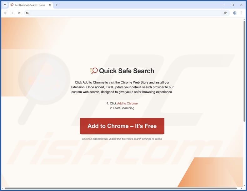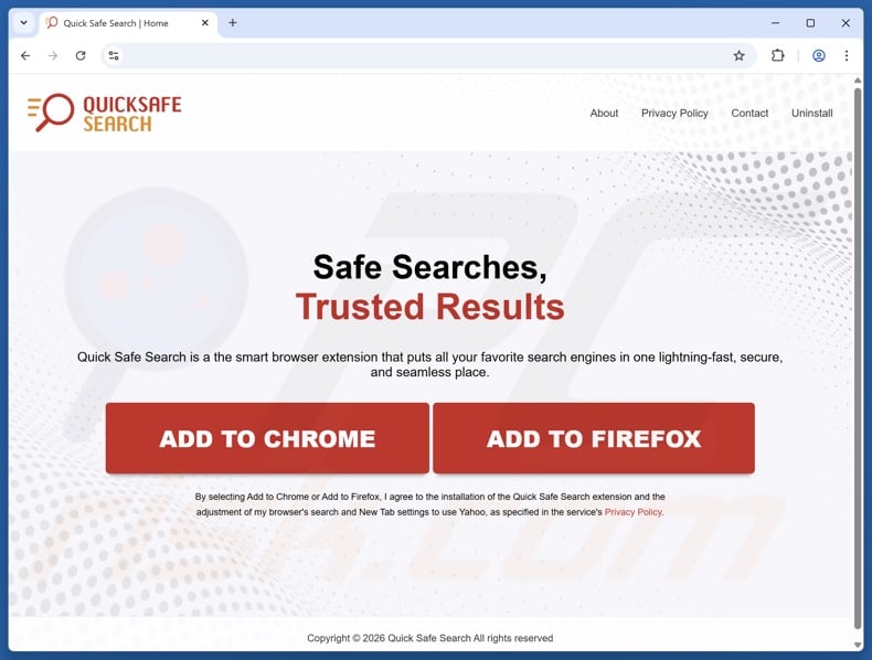 At the time of research, Quick Safe Search promoted search.quicksearchsafe.com in this manner. However, other browser hijackers could do so, and the opposite is true of Quick Safe Search.