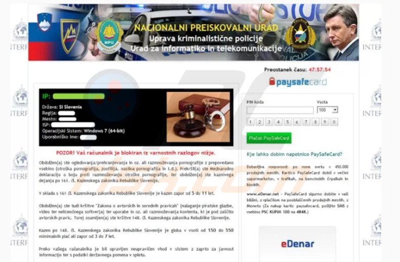 If you see a message supposedly sent by Nacionalni Preiskovalni Urad, demanding payment of a fine to unblock your computer, your PC is infected with a ransomware virus - do not pay the fine, it is a scam.