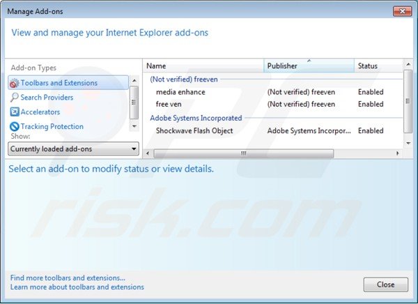 (at the top right corner of Internet Explorer) select "Manage Add-ons" Look for recently-installed browser plugins (such as "plugins", "download", or "high solution"), select these entries and click "Remove".
