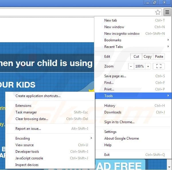 If you continue to have problems with removal of the blockit virus, reset your Google Chrome browser settings. Click the Chrome menu icon