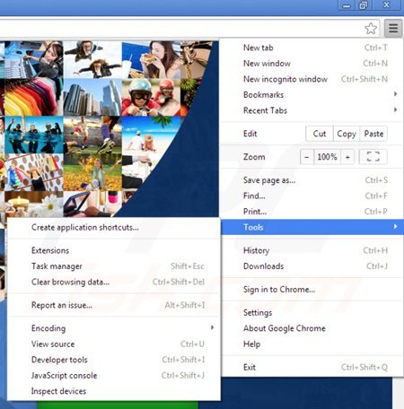 Remove malicious extensions from Google Chrome: