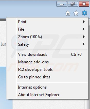 (at the top right corner of Internet Explorer), select "Manage Add-ons". Look for any recently-installed browser add-ons and remove them. Note that by default, there should be no browser extensions.