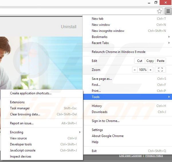 Remove malicious extensions from Google Chrome: