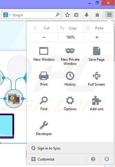 Open Mozilla Firefox, at the top right corner of the main window, click the Firefox menu,