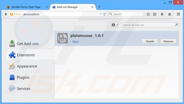- STEP 4. Remove platamoose extension from Mozilla Firefox.