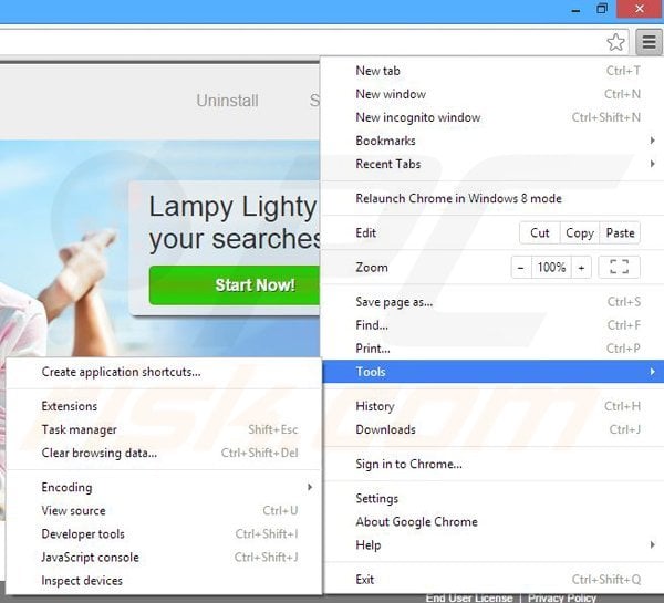 - STEP 3. Remove Lampy Lighty add-on from Google Chrome.