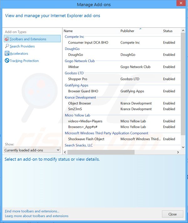 (at the top right corner of Internet Explorer), select "Manage Add-ons". Look for "SurfShield", select this entry and click "Remove". Note that SurfShield ads can be caused by other adware. In the Manage Add-ons window, remove all suspicious browser add-ons.