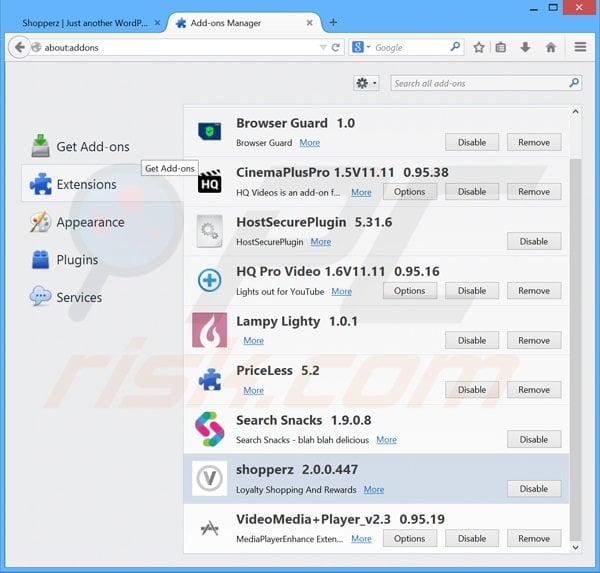 - STEP 4. Remove 'Ads by Shopperz' from Mozilla Firefox.