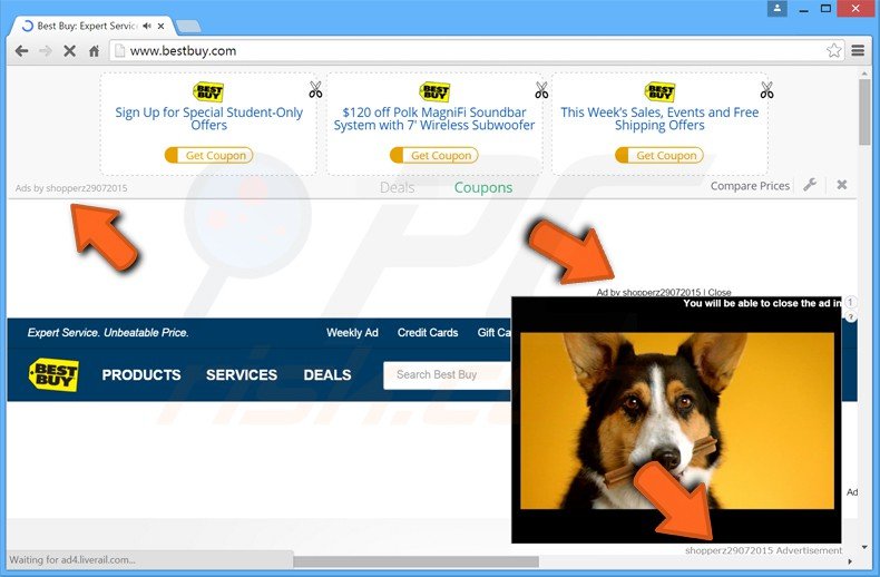 Internet browsers infected with Shopperz adware generate InterYield and DailyOfferService ads. This plug-in is similar to other adware, which infiltrates browsers through free software downloads. For example: Dealster, CinemaPlusPro, Surf Safely, and Easy Discount Pro. A previous version of this adware was named v-bates.