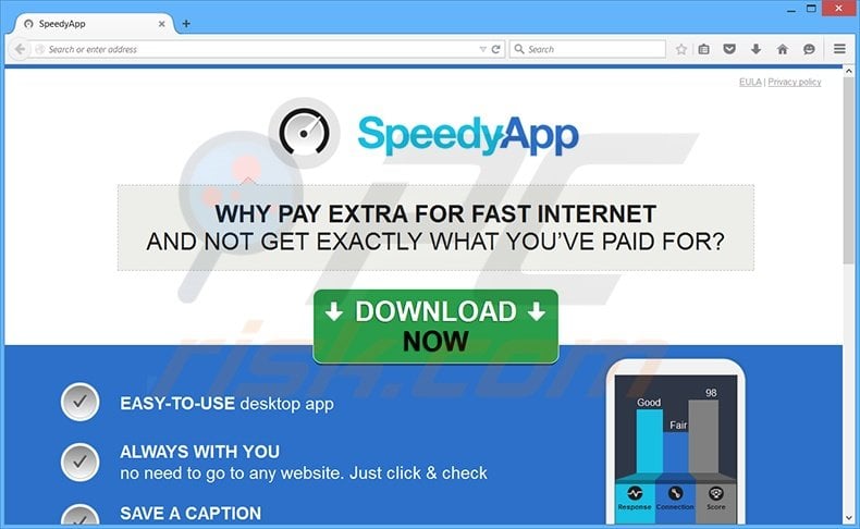 While this functionality may seem legitimate and useful, be aware that SpeedyApp is categorized as adware or a potentially unwanted program since it employs a deceptive software marketing method called 'bundling' (stealth installation of additional programs together with the chosen software) to install on Internet browsers without users' permission.