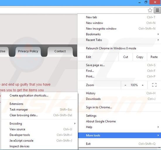 Remove malicious extensions from Google Chrome: