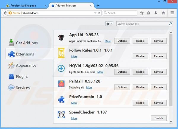 (at the top right corner of the main window), select "Add-ons". Click "Extensions", in the opened window, remove all recently-installed suspicious browser plug-ins.