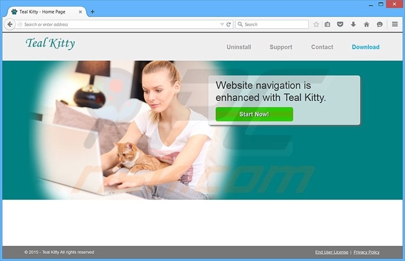 If you have installed Teal Kitty, and you observe intrusive online ads while surfing the Internet, read the removal instructions provided and eliminate this rogue browser plug-in from your Internet browsers.