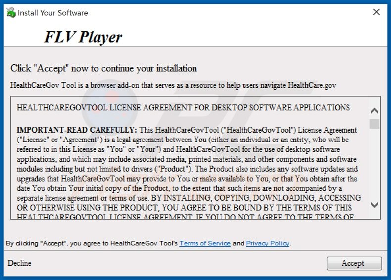 Healthcare Gov Tool employs a deceptive free software marketing method called 'bundling' to install on Internet browsers. This method allows developers to distribute their applications together with other software. Healthcare Gov Tool is mostly bundled with the free software downloadable on freeware download websites.