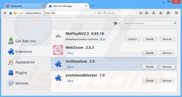 (at the top right corner of the main window), select "Add-ons". Click on "Extensions" and remove all recently-installed browser plug-ins.