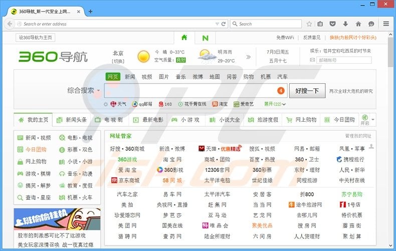 The Hao.360.cn website provides a search bar that can be used as the homepage and default search engine. Although this website is not directly related to malware or other computer viruses, it employs deceptive techniques to generate web traffic.