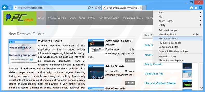 (at the top right corner of Internet Explorer), select "Manage Add-ons". Look for "bestadblocker", select this entry and click "Remove".