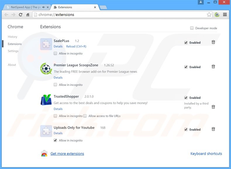 At time of research, NetSpeed App did not install its browser plug-ins on Internet Explorer, Google Chrome, or Mozilla Firefox, however, it was bundled with other adware. Therefore, you are advised to remove all potentially unwanted browser add-ons from your Internet browsers.