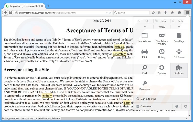- STEP 4. Remove 'Ads by Kikblaster' from Mozilla Firefox.