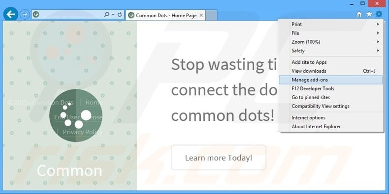 (at the top right corner of Internet Explorer), select "Manage Add-ons". Look for "Common Dots", select this entry and click "Remove".