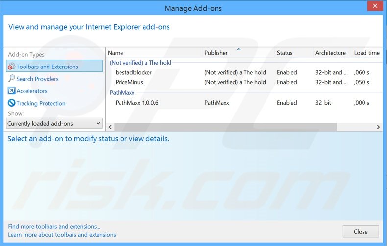 (at the top right corner of Internet Explorer), select "Manage Add-ons". Look for any recently-installed suspicious extensions, select these entries and click "Remove".