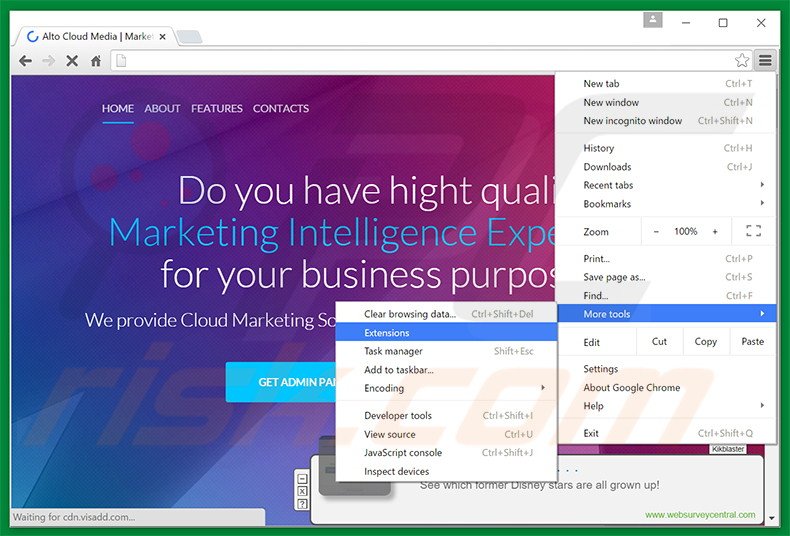 Remove malicious extensions from Google Chrome: