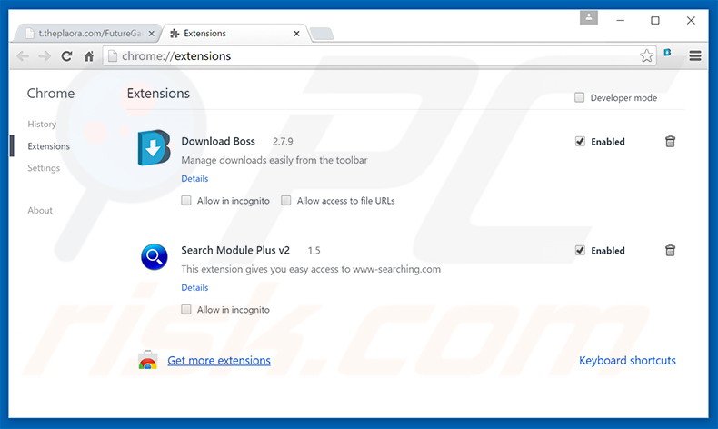 (at the top right corner of Google Chrome), select "Tools" and click "Extensions". Locate all recently-installed suspicious browser add-ons, select these entries and click the trash can icon.
