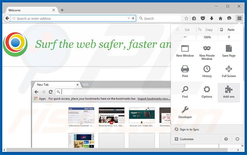 (at the top right corner of the main window), select "Add-ons". Click "Extensions", in the opened window, remove all recently-installed suspicious browser plug-ins.