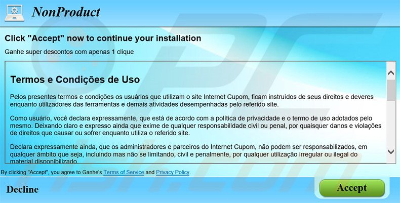 Although most of these ads redirect users to various e-commerce sites such as online stores, some lead to infectious sites. Therefore, clicking advertisements generated by this PUP is risky and might cause further adware or malware infections. Another downside of Internet Cupom is information tracking.