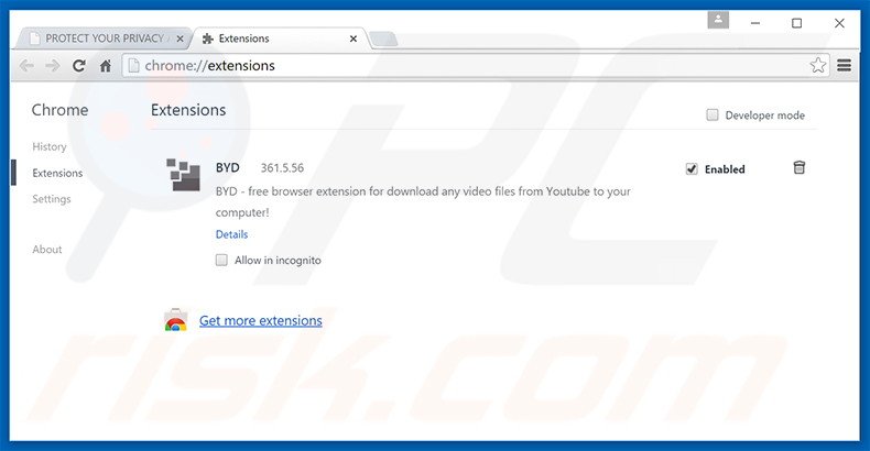 (at the top right corner of Google Chrome), select "Tools" and click "Extensions". Locate all recently-installed suspicious browser add-ons, select these entries and click the trash can icon.