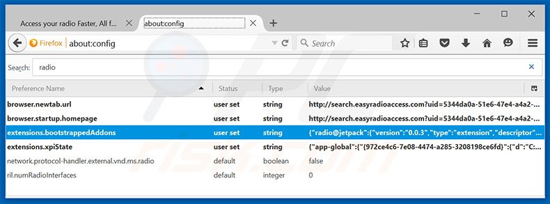 Search.easyradioaccess.com browser hijacker removal from Internet browsers: